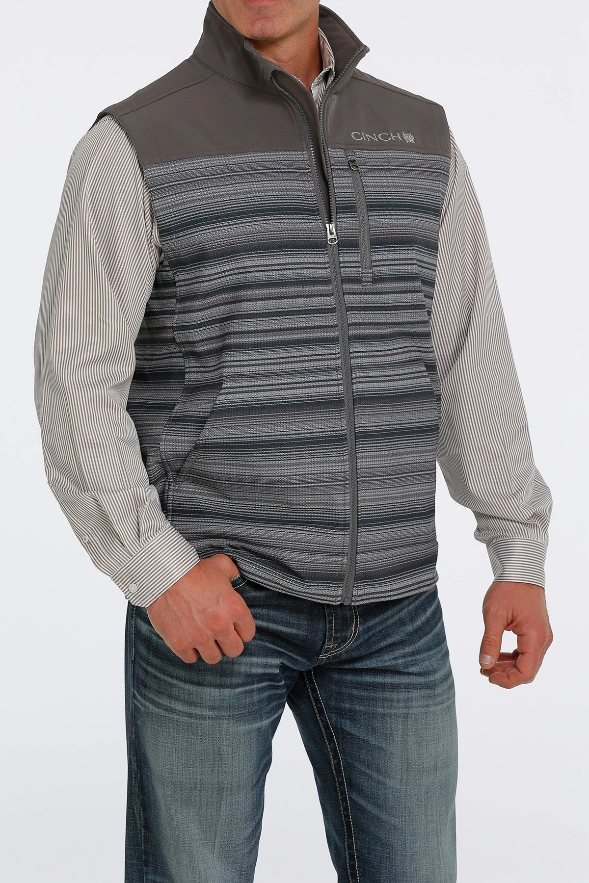 You can’t go wrong with a Cinch vest to make you look your best. In addition to the timeless design details, you’ll have the versatility of layering over several of your shirts and will stay comfortable with the Durable Water Resistant (DWR) finish.