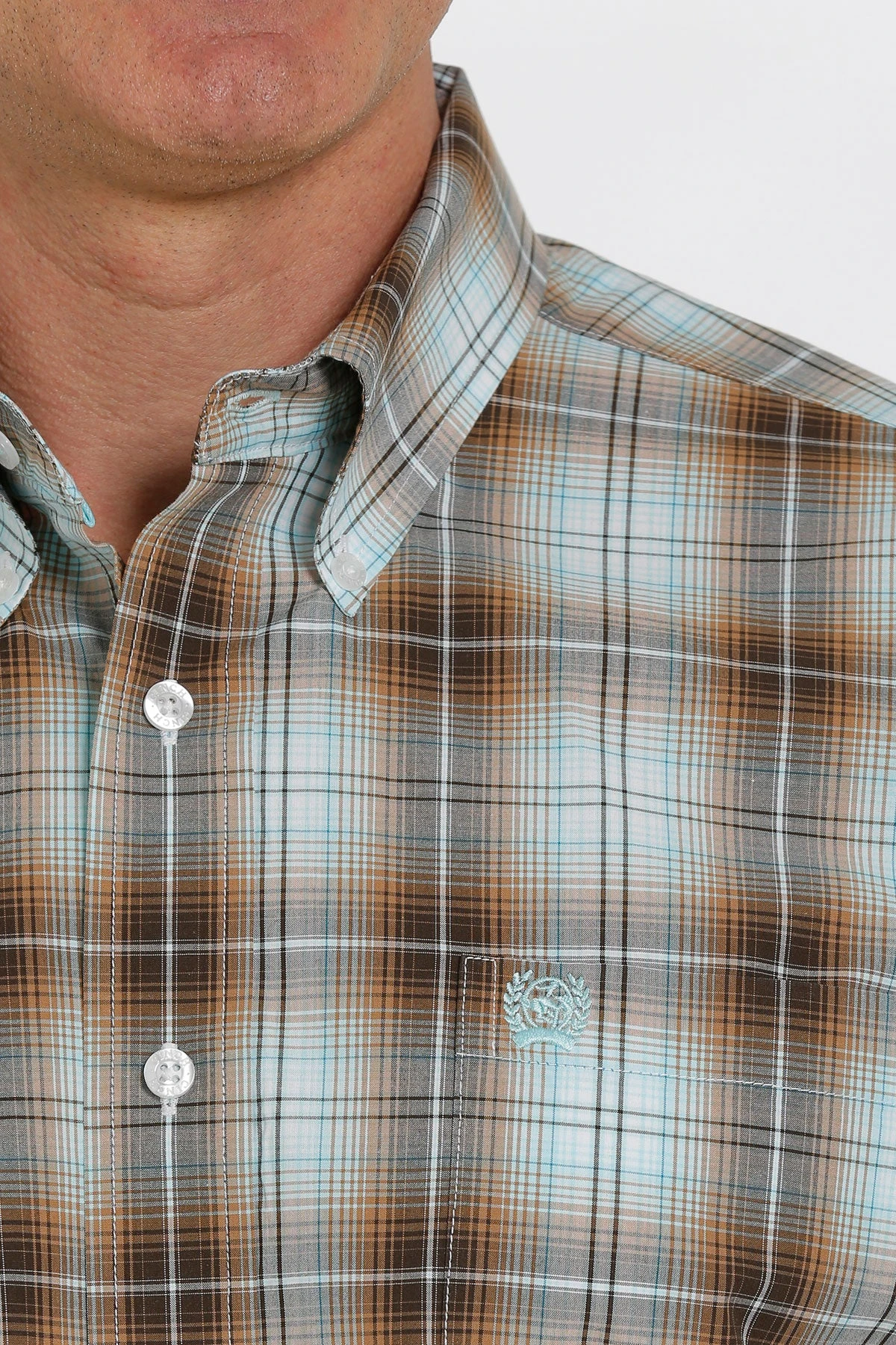 ‘Cinch’ Men’s Ombre Plaid Short Sleeve Button Down Shirt – Brown/Turquoise