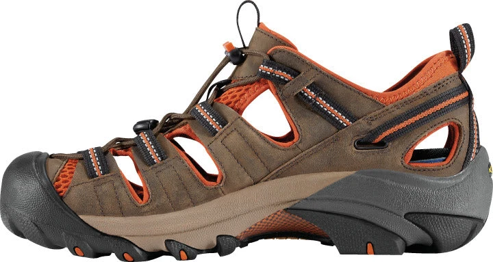 Keen footwear is known for the versatility of their sandals. As a hiking shoe, they feature an internal supportive midsole/footbed, protective toe and a multi-directional lug outsole. The waterproof leather, breathability and open vents make them the perfect sandal.ย