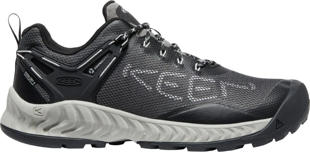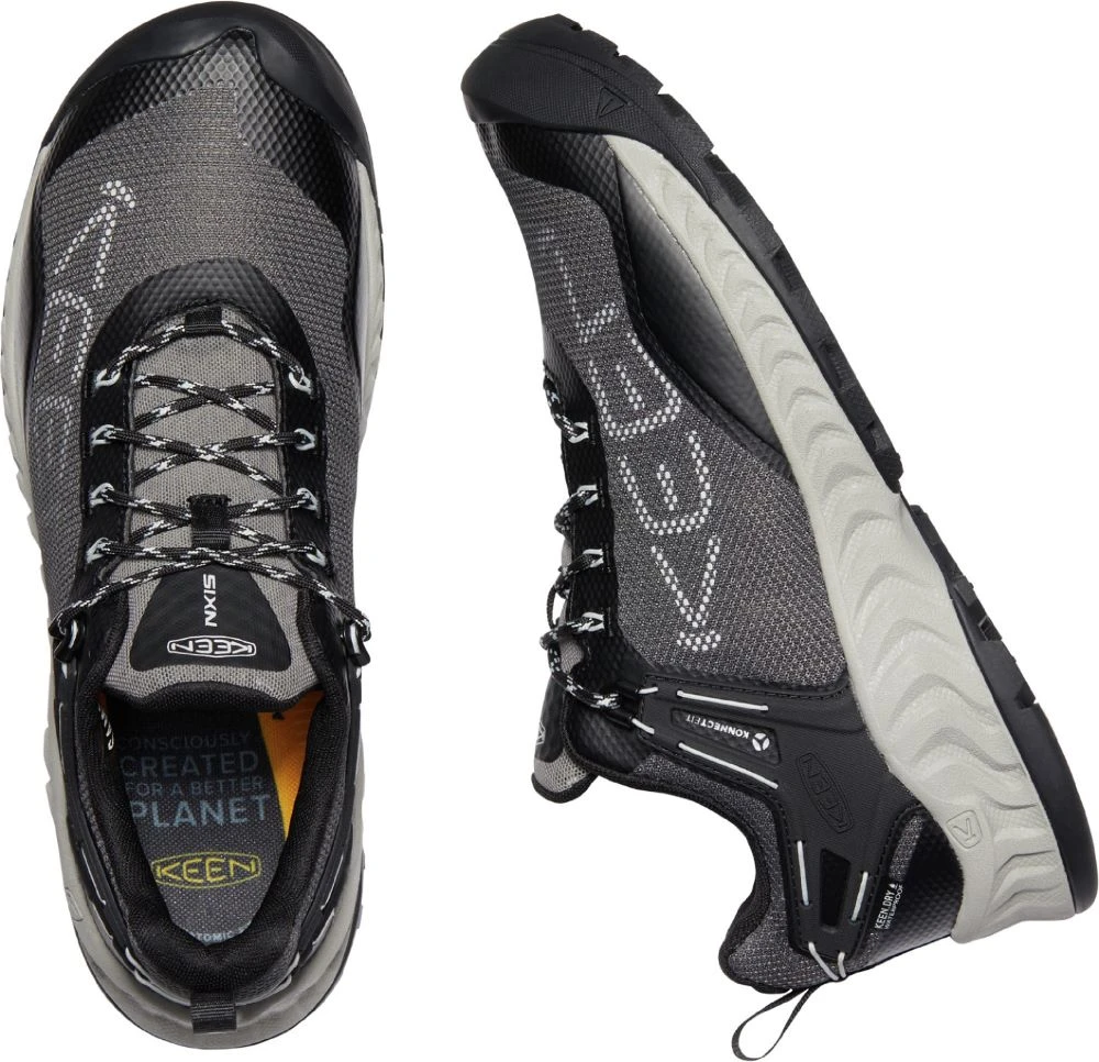 Keen’s iconic hikers offer room-for-your-toes comfort, protection and stability. Now they have designed those features into a shoe with more of a running shoe fit and feel and made them waterproof and gave them a grippy sole as well.