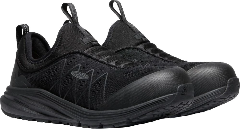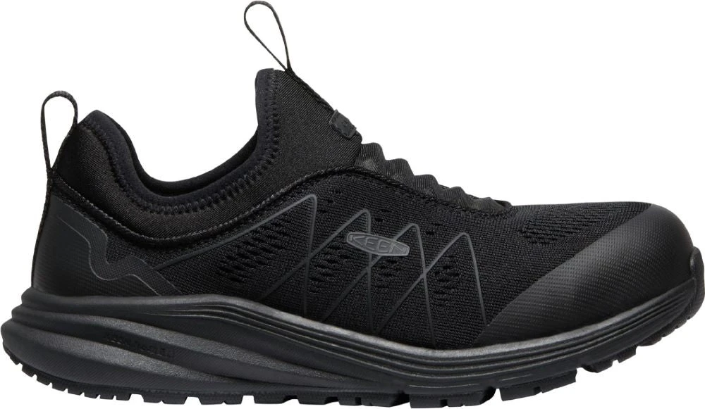 Built for women working in a warehouse, on an assembly line or light manufacturing setting. You’ll find comfort in the breathable knit upper, the moisture-wicking lining and Keen’s KEEN.ReGEN midsole. The laceless design is an added plus and the safety features are numerous.
