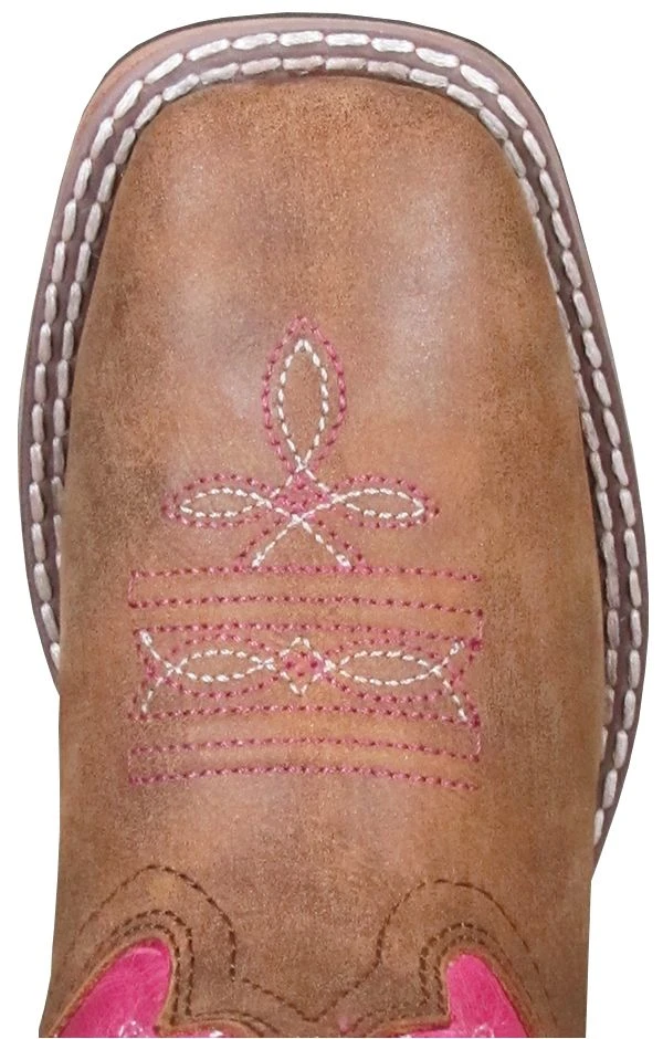 Pretty in Pink! This dressy little square toe boot will look great on the wedding dance floor while she twirls the night away, or why not wear them every day.Â